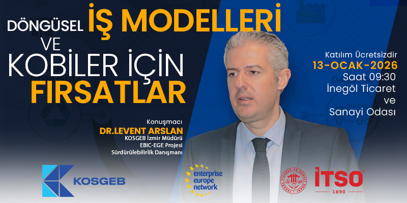 Odamız ve KOSGEB işbirliğinde, Avrupa İşletmeler Ağı (EEN) Projesi kapsamında, KOBİ niteliğindeki firmaların döngüsel iş modelleri ve finansman olanakları hakkında bilgilendirmek amacıyla, 13 Ocak 202..
